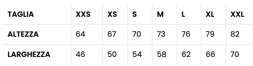 • Oversize fit (si consiglia una taglia in meno rispetto alla propria)